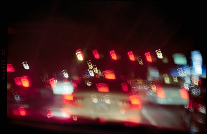 Shake circles light trails - Kodak Vision3 250D movie film as still photography.