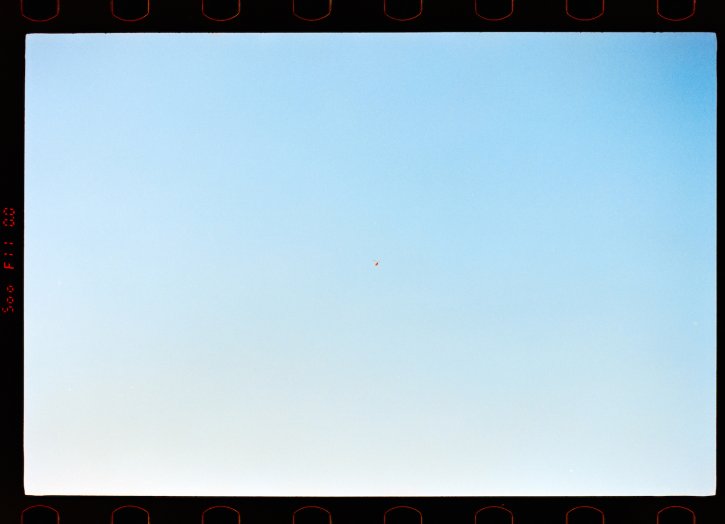 helicopter flying away. Kodak Vision3 250D.
