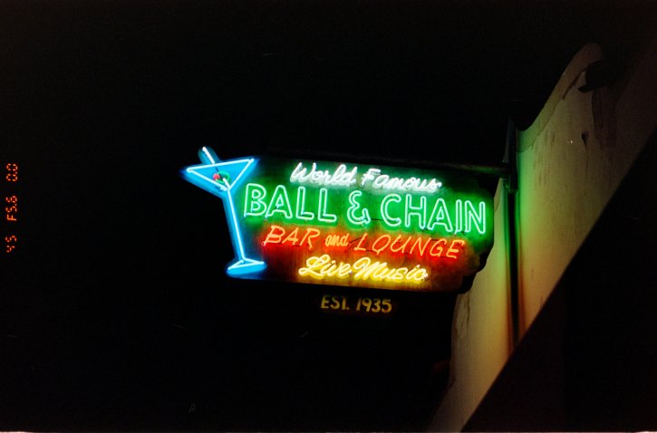 Ball & Chain Neon sign at night. Little Havana Miami. Kodak Portra 400 with the Nikon F80s.