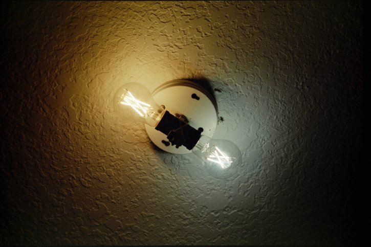 3000k / 5000k light LED bulbs. Incandescent bulbs are better but i noticed if I put two defferent color LED togetter they can be ok.