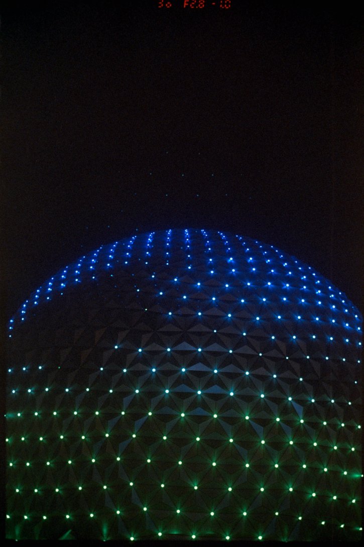Epcot Golf ball at night. Kodak Vision3 250D movie film.
