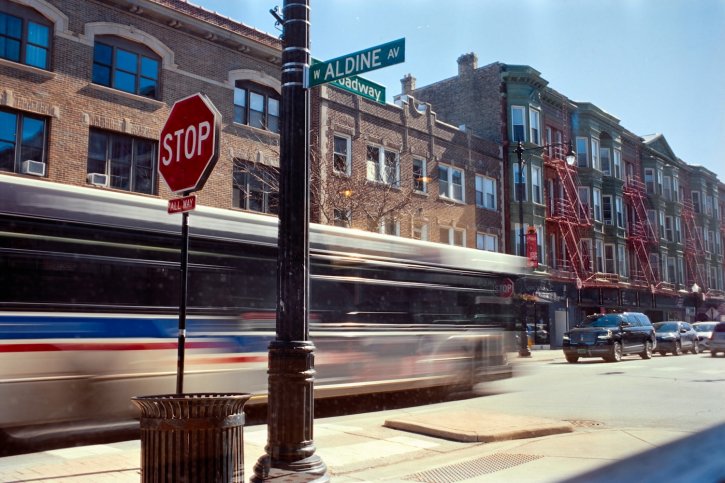 Cool neon sign of NORTH BUENA DELI (UPTOWN) Chicago, IL. Delicious SUBS & SANDWICHES - WE DELIVER - Neon Sign. Kodak Ektar 100.