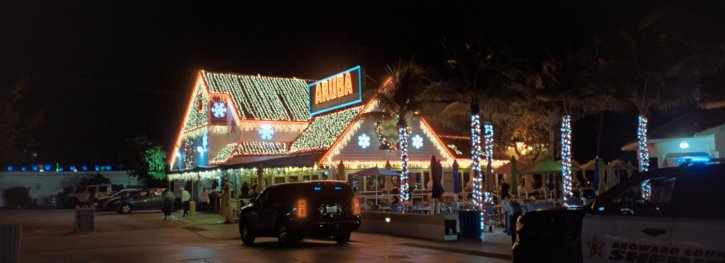 Christmas lights on Aruba restaurant. Kodak Portra 160 on Nikon Lite Touch point and shoot camera.