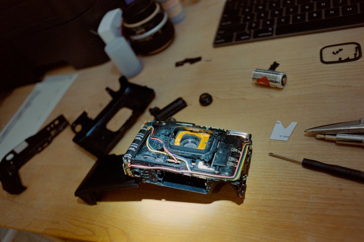 My fail attempt at fixing my awesome Nikon Lite Touch AF point and shoot camera. It's now a disassembled mess.