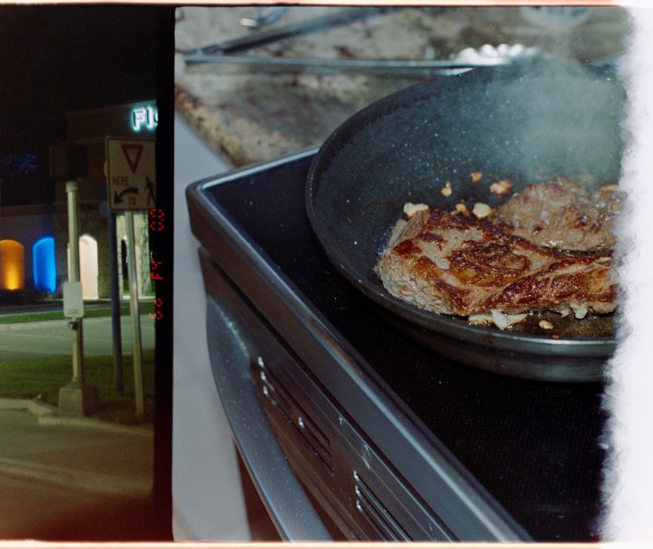 Last of the roll, steak dinner on Kodak 5207 film, Nikon F80s.
