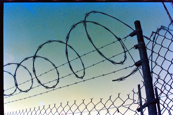Barbed wire fence film photo from 1990's