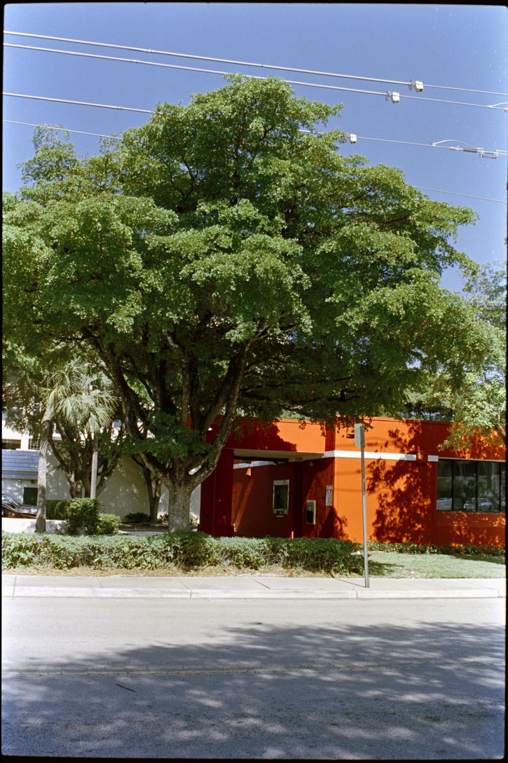 Bright orange building in South Miami. Shot on Kodak Vision3 250D movie film as still photography.