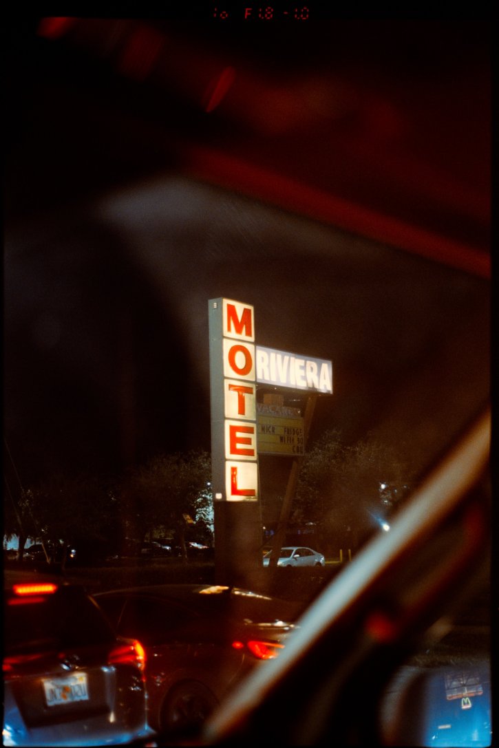 Cool looking Motel Riviera (Kissimmee, FL) sign but it's not enough to get me to want to stay there HA. Kodak Vision3 250D film.