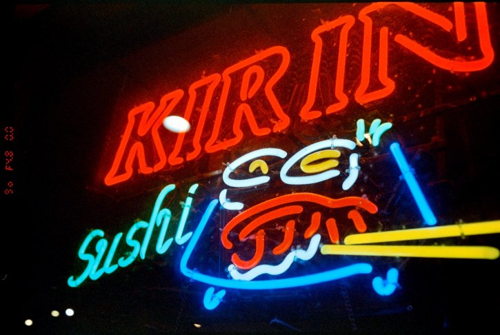 Walk sign - Wait. Kodak 5207 at night.