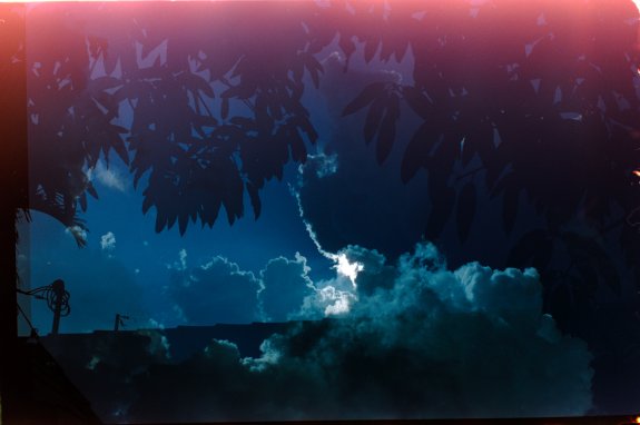 Double exposure shots with a pink hue from a light leak mistake. Shot on Cinestill 50D.