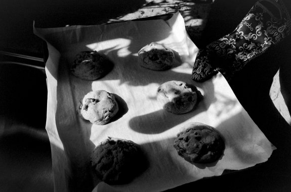 Chocolate chip cookies on Kodak Tri-X 400 film.