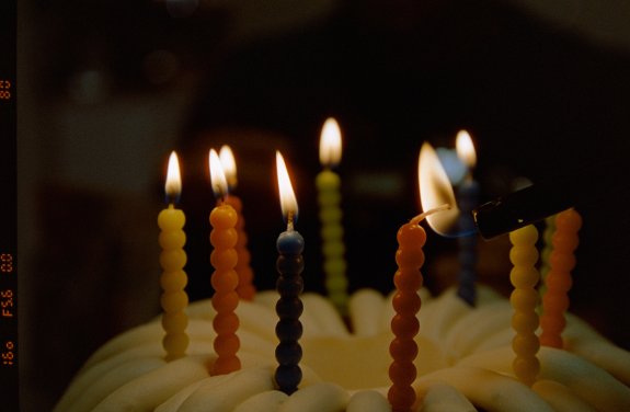 Candle light Happy Birthday cake on Kodak Portra 800 film.