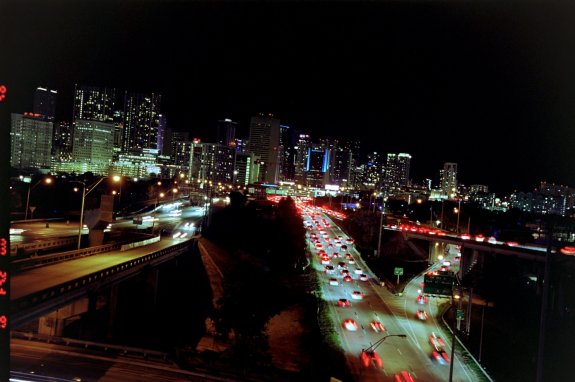 Traffic on Intersate 95 heading south into downtown Miami at night.
