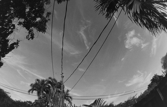 Palm trees next to power lines oh HP-5 Plus 400 film.