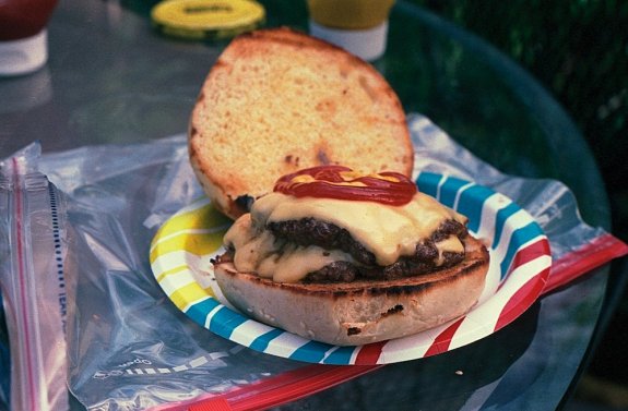 Grass fed Burger with a homemade bun - Fujifil Superia X-tra 400 film
