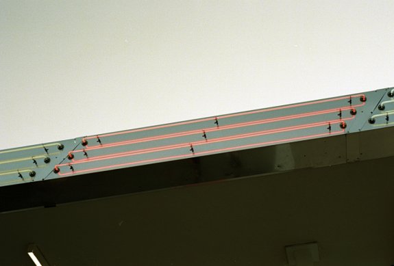 Lines of Neon, red green and maybe yellow. Nikon F80, 50mm f/1.8 on Kodak Ektar 100 film.