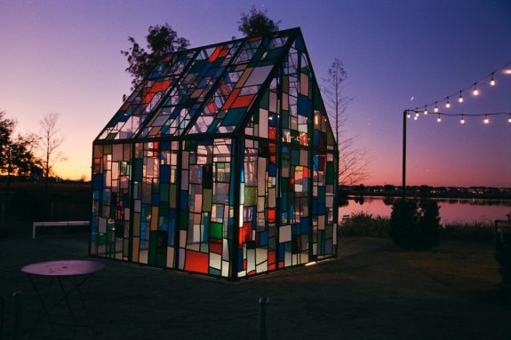 Sun strip of light on an old-school lawnchair Kodak Ultramax 400 film.